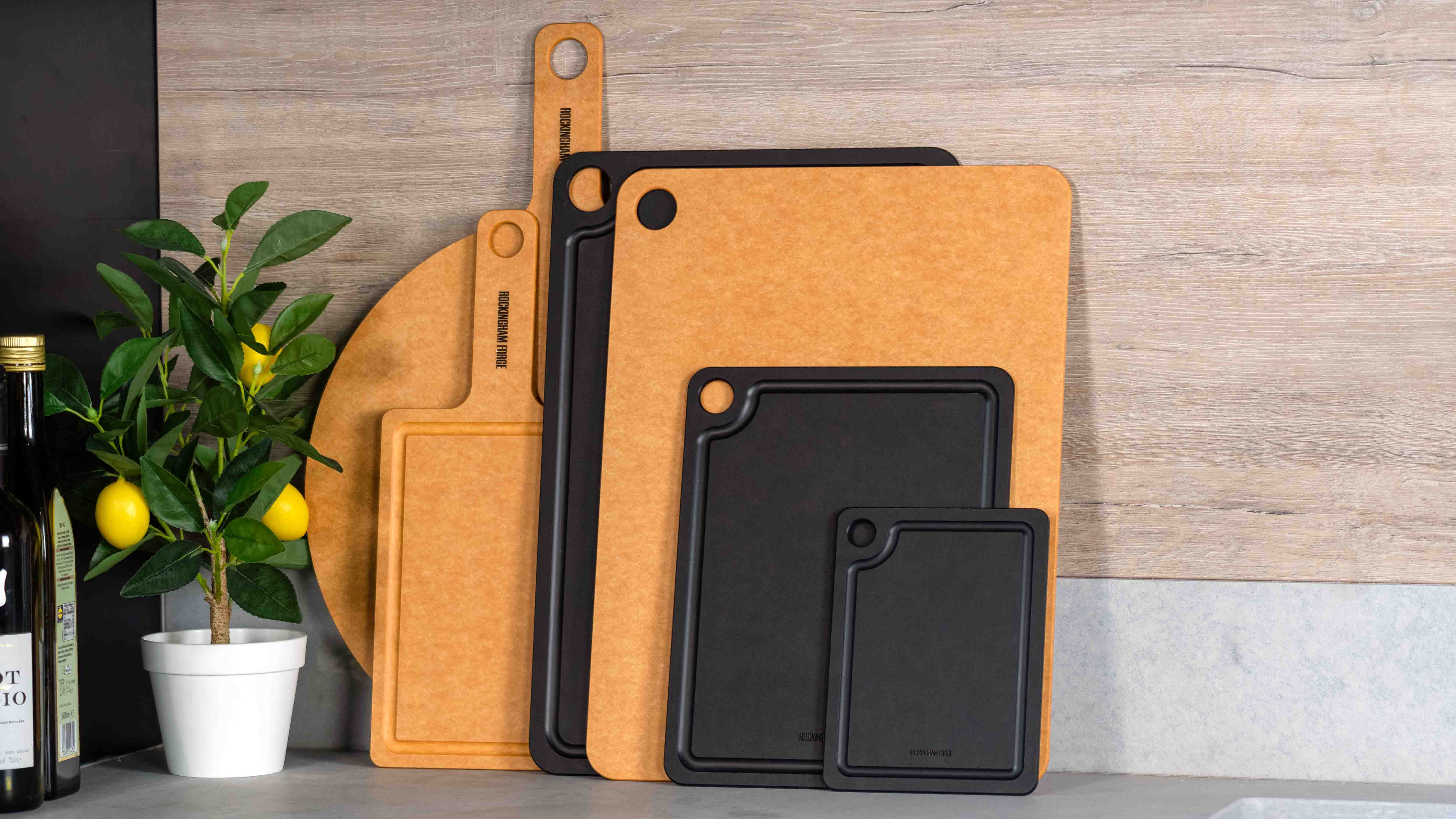 Layered wood fibres are pressed under great heat, paper bonds with resin to create the tough and durable material that is used for the cutting boards. A environmentally and health friendly alternative to plastic or wooden cutting boards. The surface is kind to your knife edges.